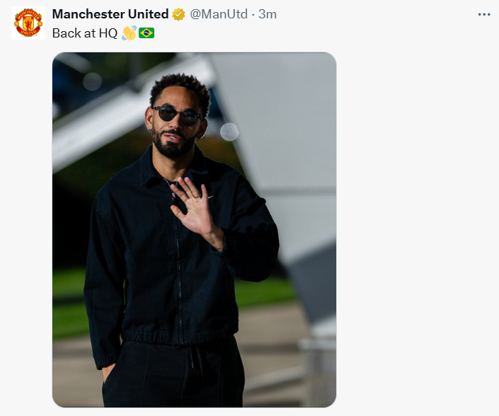 雷速体育9月12日讯 曼联官方社媒晒出了一张库尼亚的照片,并配文:“回到总部”。