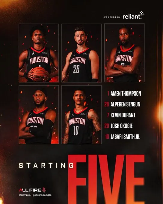 火箭首发名单出炉:阿门、奥科吉、杜兰特、小贾巴里、申京。
