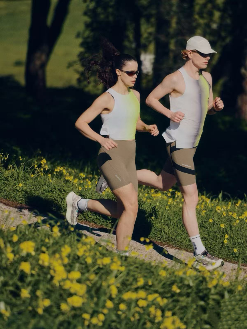 比如服饰。在强势发展的鞋履之外,萨洛蒙也在同步开发适合路跑训练的服装产品,抓住新的细分品类增长机遇。今年1月,萨洛蒙推出新的FALCON FLY高端竞训跑服系列,设计灵感源自品牌双板竞速滑雪鞋的结构语言,完整覆盖跑步爱好者在跑前热身、跑步训练以及跑后放松的所有场景,产品涵盖保暖夹克、背心、羊毛混纺长袖、二合一跑步裤等产品。新的FALCON FLY跑服系列既是品牌全品类生态发展的创新延伸,也标志着品牌在高端路跑市场布局的重大升级。