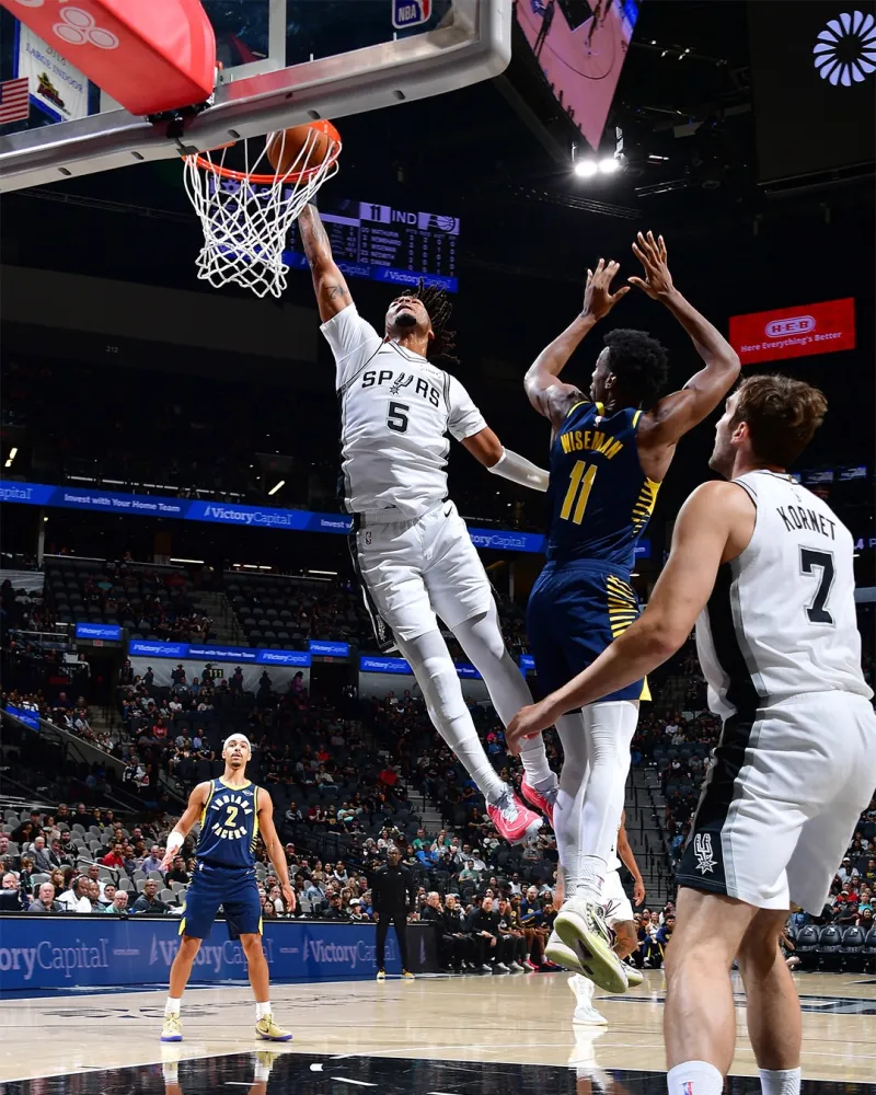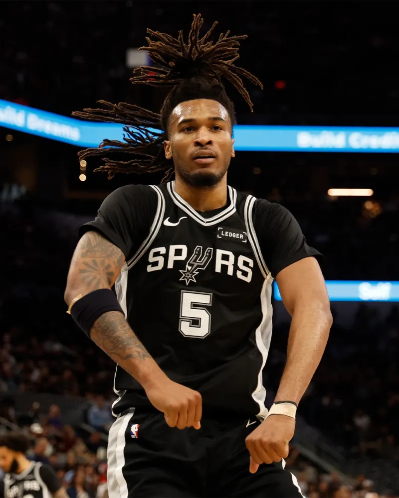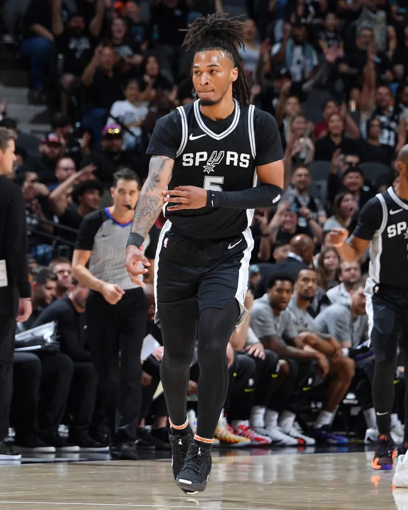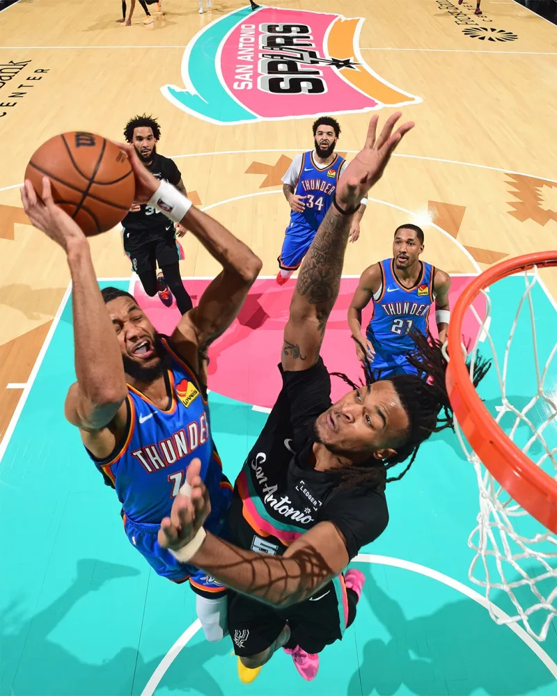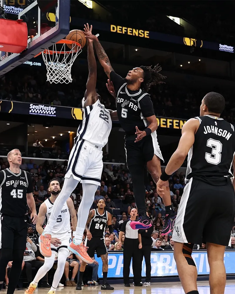 虎扑04月08日讯 SLAM更新官方社媒,晒出马刺球员斯蒂芬-卡斯尔精彩赛场照与球迷分享。